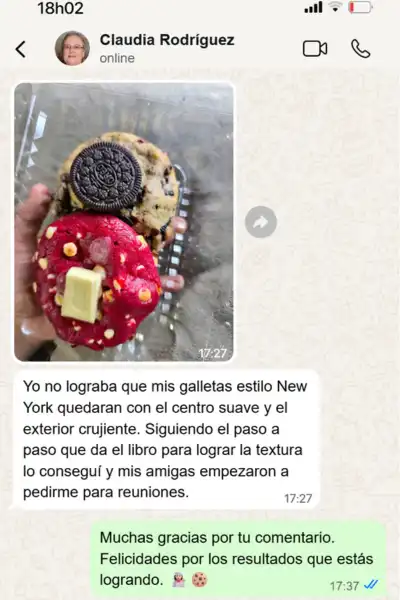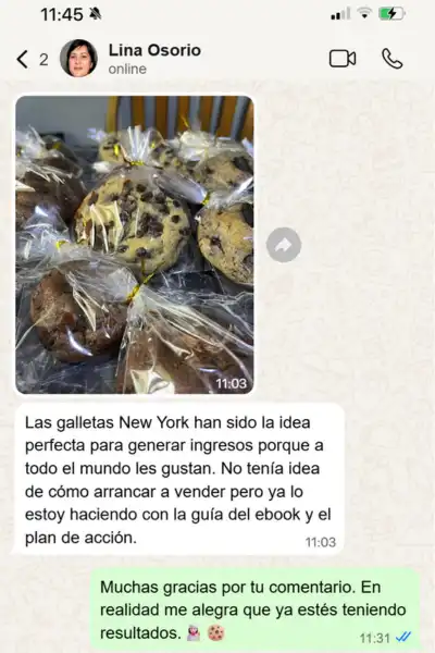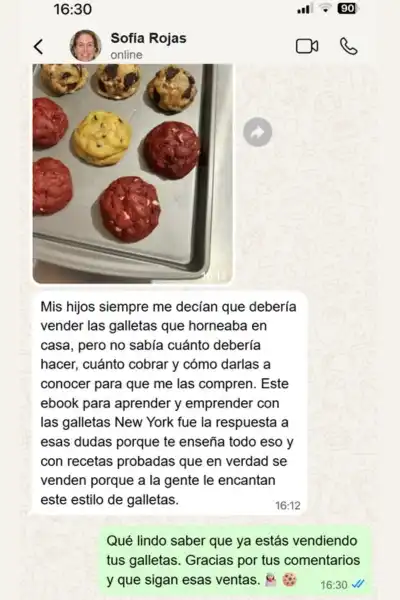 Aprendes ambas cosas. Primero la técnica para lograr cookies estilo New York reales y luego cómo venderlas desde casa.